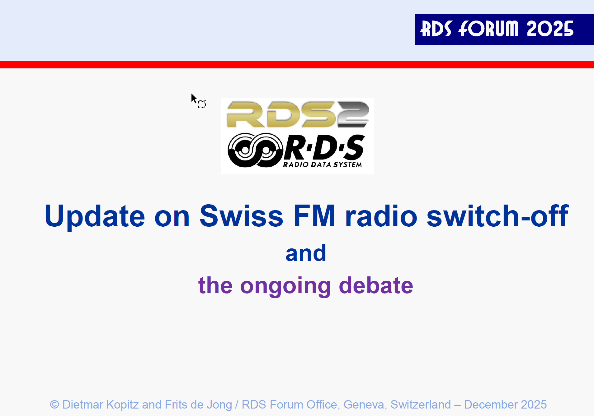 - On 11 Dec 2025 the Public broadcaster SRG/SSR announced plans to return to FM broadcasting.